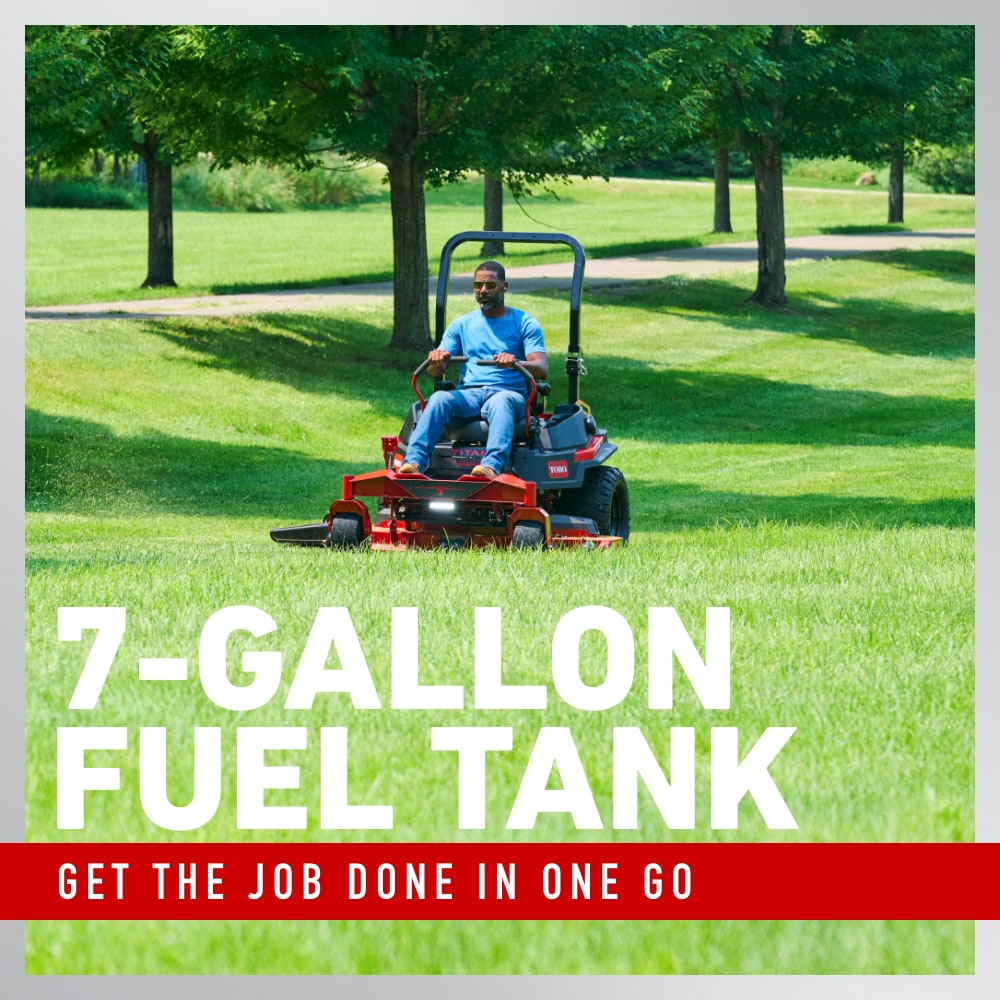Good Speed & Efficiency: Up to ~9 mph forward mowing/transport speed helps cover ground fast. Fuel Capacity: Large 7-gallon tank (≈ 26.5 L) means fewer stops for refueling. Toro+2Power Zone Christiansburg+2