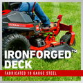 Wide, Fabricated Deck: 60-inch, 3-blade fabricated deck (10 gauge high-strength steel with reinforced leading edge) gives excellent coverage and durability.