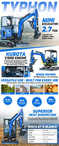 TYPHON TERROR X2 Mini Excavator 2.7 Ton Trench Digger EPA Diesel Kubota V1505