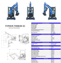 Designed for Small Projects: The TYPHON TERROR X2 yard excavator was specially engineered for small construction projects, featuring a compact but reliable design that ensures easy maneuverability in small areas, including farms, gardens, public spaces, parks, orchards, farms, and more!